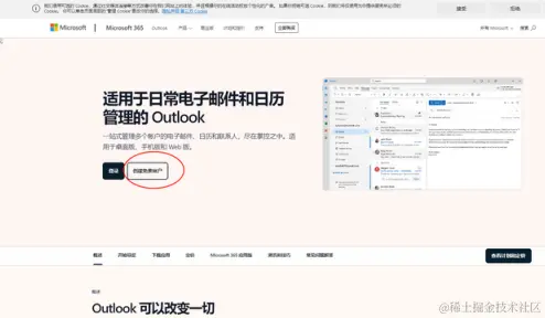 打开outlook官网选择创建免费账户