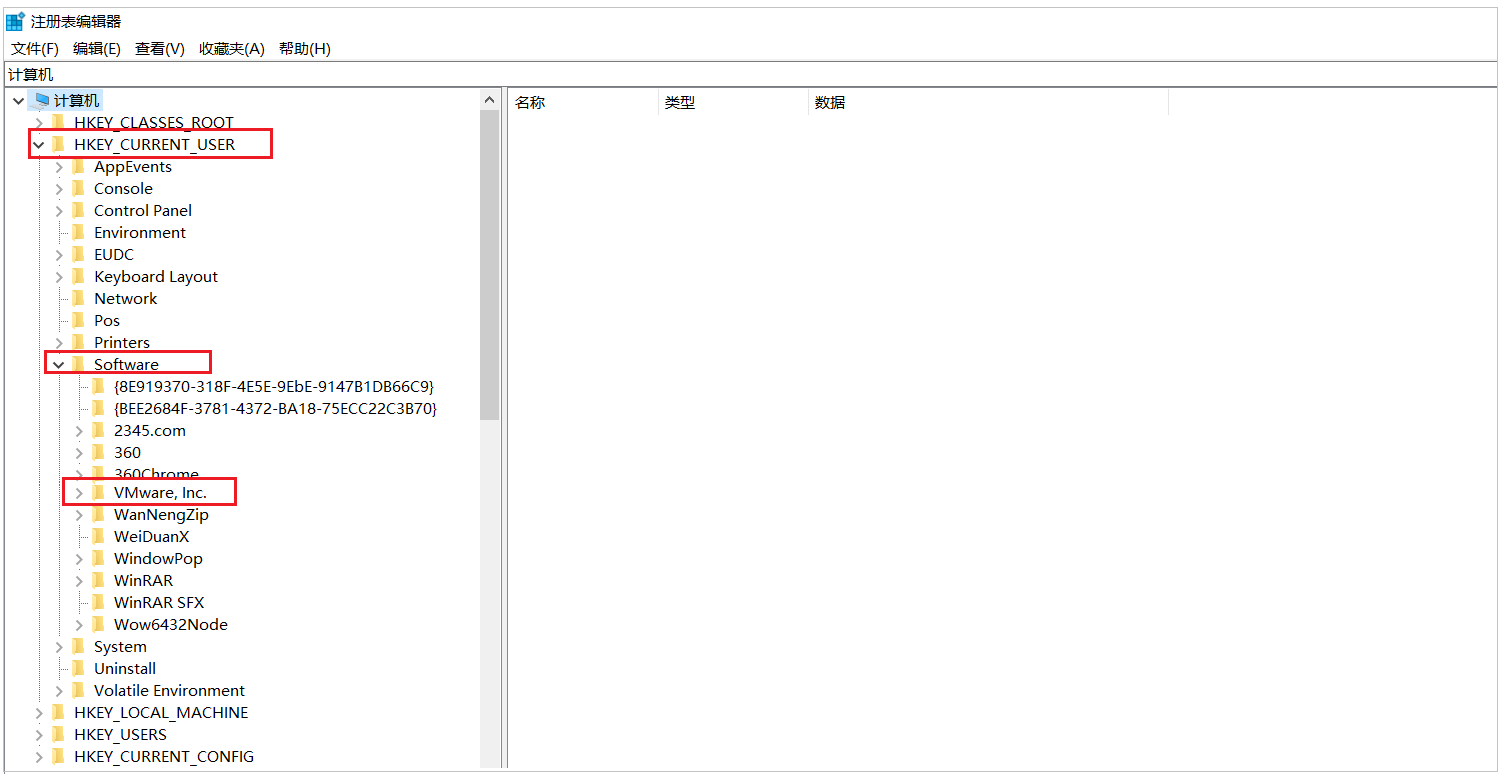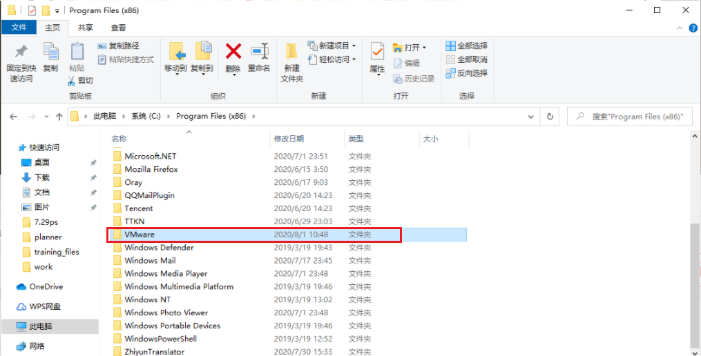 退出到VMware这层目录, 右键删除"VMware"文件夹,删除完成: