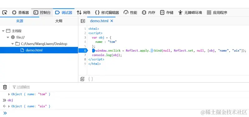 window.onclick= Reflect.apply.bind(null, Reflect.set, null, [obj, "name", "aix"]);