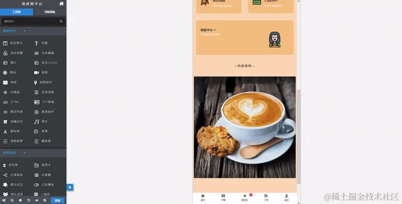 step3, 在线编辑修改站点内容,设计完成后,点击发布这样一个奶茶店小程序就制作完成了