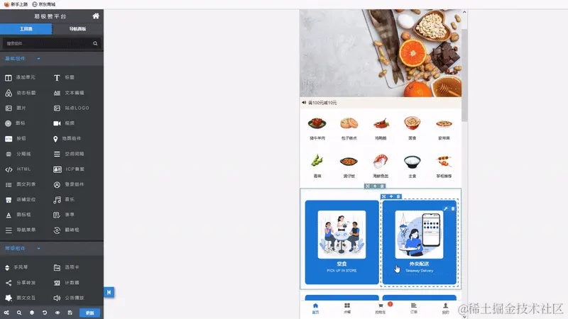 step1, 在「易极赞」的小程序模板中,选中餐饮外卖小程序模板,一键即可生成发布自己的品牌设计小程序
