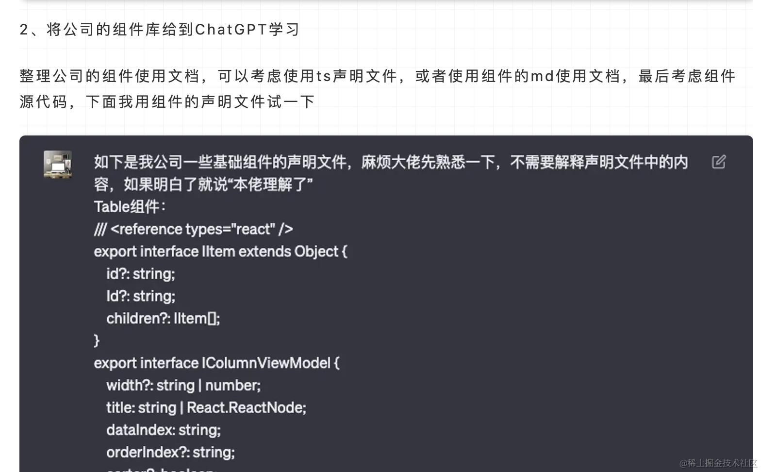 在第2步中,我们将公司的组件库注入到ChatGPT中,这个其实就是用的RAG思想。
