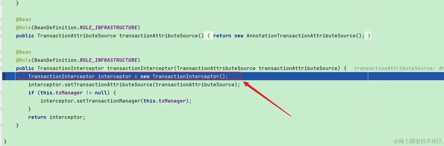 方法是private,这个我们可以替换掉AnnotationTransactionAttributeSource的实现,开启为protected、public代理。那怎么替换呢,还是用到了BeanDefinitionRegistryPostProcessor,我们可以这么写: