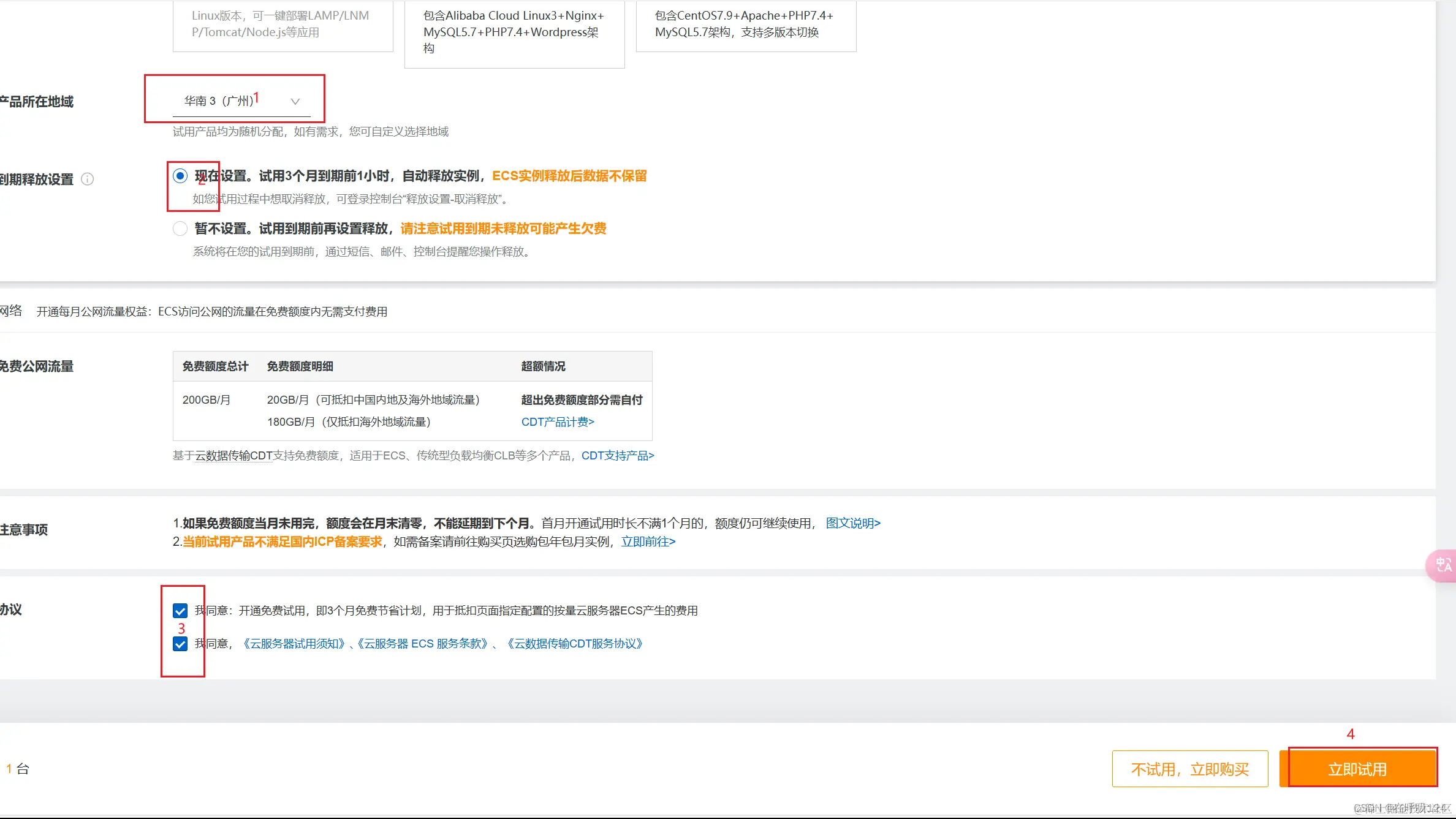 选择所在区域,这个根据自己的爱好选择,勾选现在设置,为啥选这个,图片里有详细介绍,个人推荐这个,毕竟免费试用三个月。