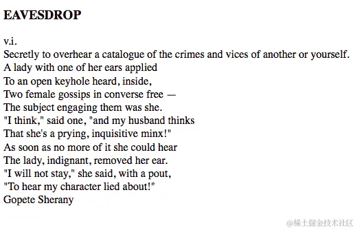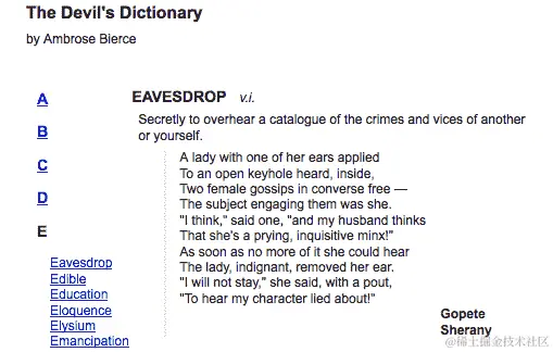假设我们想允许每个词典术语名称控制其后跟的定义的显示;点击术语名称将显示或隐藏相关定义。根据我们目前所见的技术,这应该是相当简单的: