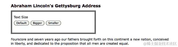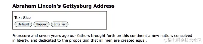 现在,当用户点击“放大”按钮时,文本变大了。再次点击,文本就变得更大了: