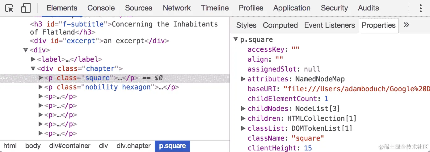 接下来,可以使用 .css() 方法轻松发现字体大小:$('div.speech').css('fontSize')。然而,返回的值是一个字符串,包含数值字体大小值和该值的单位(px)。我们需要去掉单位标签,以便使用数值进行计算。另外,当我们计划多次使用一个 jQuery 对象时,通常最好通过将生成的 jQuery 对象存储在常量中来缓存选择器: