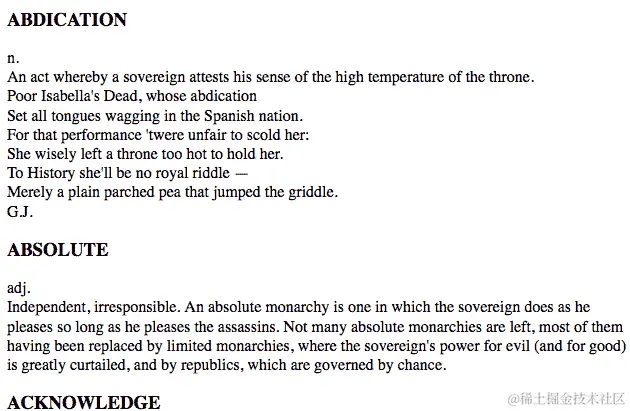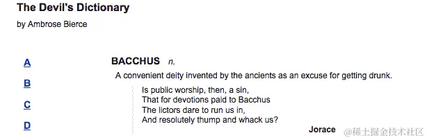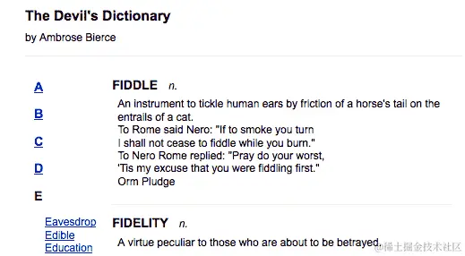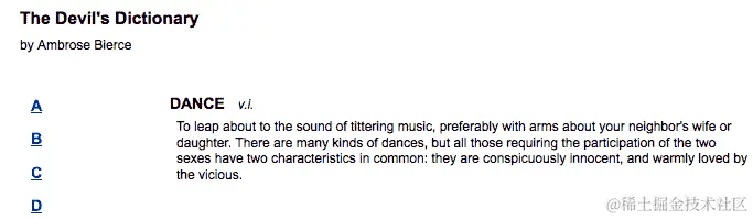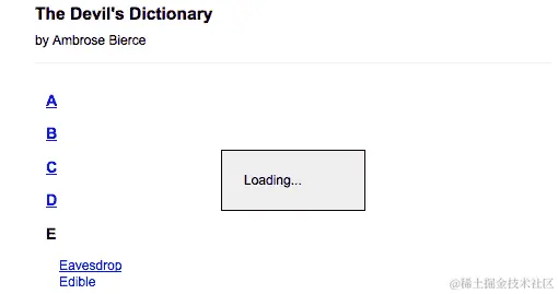现在,我们的字典在初始页面加载时不显示任何定义。相反,它只显示一些空白空间。让我们通过在文档准备好时显示"A"条目来改变这种情况。我们如何做到这一点?