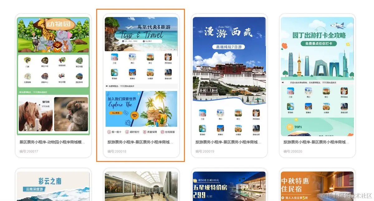 step1, 在「易极赞」的小程序模板中,选中游乐场票务系统小程序模板,一键即可生成发布自己的品牌设计小程序