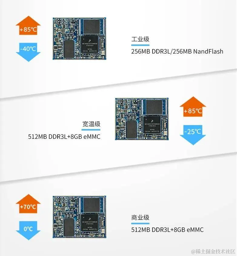 FETMX6ULL-S核心板包括工业级、宽温级和商业级3种温宽,全部经过高低温试验测试,保证了产品质量。同时,FETMX6ULL-S核心板还有2种内存和存储配置可选,包括256MB DDR3L/512MB DDR3L内存和256MB NandFlash/4GB eMMC存储空间,多样化的配置选项,满足了不同行业和用户的多样化需求。