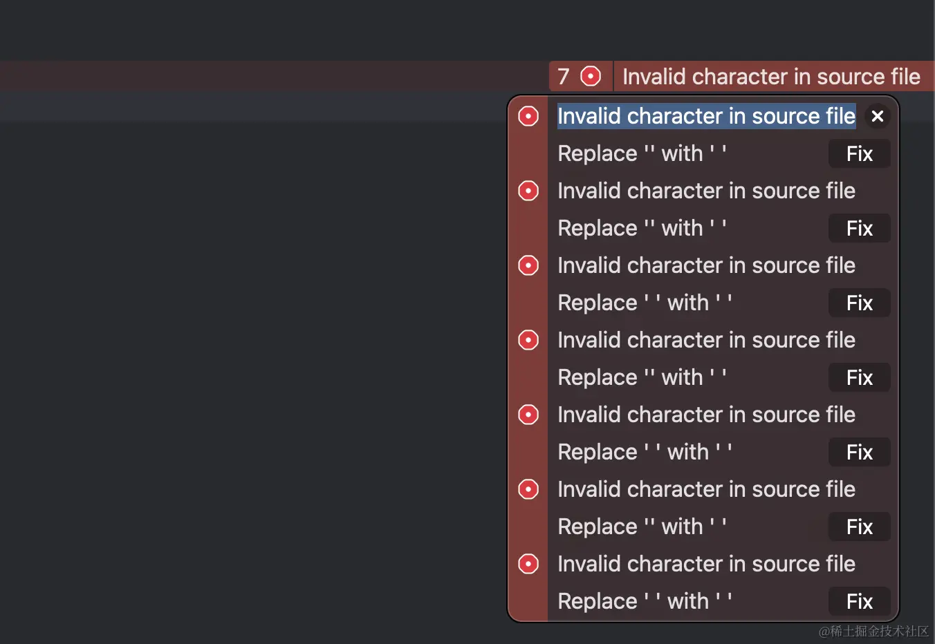 Invalid character in source file