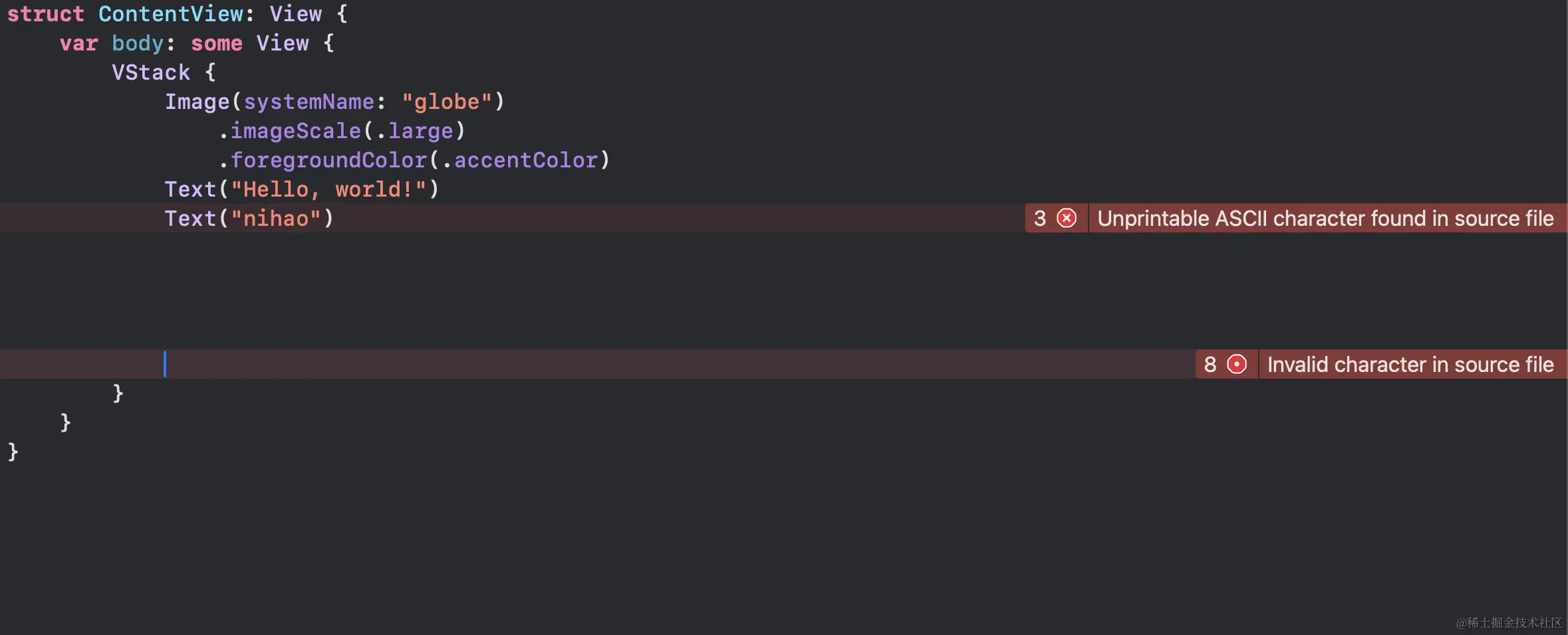 而且还会报红色提示:意思是不可用的字符
