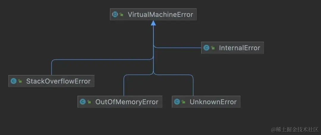 JVM 抛出这些错误其实是一种防止整个进程崩溃的自我防护机制,这些错误其实是 JVM 内部定义了信号处理函数处理后抛出的,JVM 认为这些错误"罪不致死",所以选择恢复线程再给这些线程抛错误(就算线程不 catch 这些错误也不会崩溃)的方式来避免自身崩溃,但如果线程触发了一些其他的非法访问内存的错误,JVM 则会认为这些错误很严重,从而选择退出,比如下面这种非法访问内存的错误就会被认为是致命错误,JVM 就不会向上层抛错误,而会直接选择退出