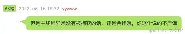 他认为如果 JVM 中的主线程异常没有被捕获,JVM 还是会崩溃,那么这个说法是否正确呢,我们做个试验看看结果是否是他说的这样