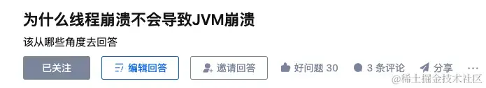 网上看到一个很有意思的美团面试题:为什么线程崩溃崩溃不会导致 JVM 崩溃,这个问题我看了不少回答,但发现都没答到根上,所以决定答一答,相信大家看完肯定会有收获,本文分以下几节来探讨