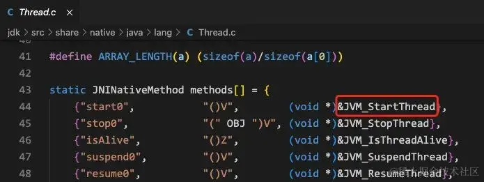 可以看到最终会调用 start0 这个 native 方法,我们去下载一下 openJDK(地址:github.com/AdoptOpenJD… 来看看这个方法对应的逻辑