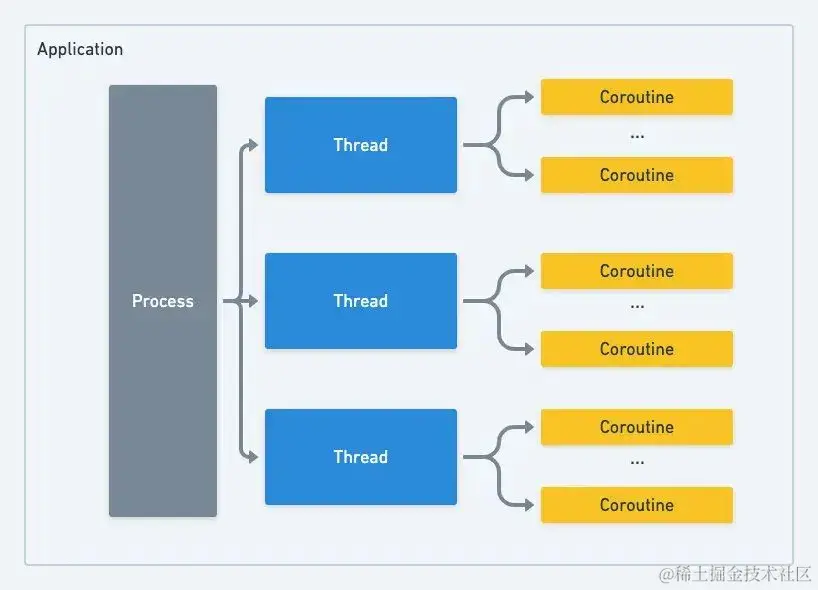 NPTL 模型其实已经足够优秀了,上述问题本质上其实还是因为线程还是太“重”所致,那能否再在线程上抽出一个更轻量级的执行单元(可被 CPU 调度和分派的基本单位)呢,答案是肯定的,在线程之上我们可以再抽象出一个协程(coroutine)的概念,就像进程是由线程来调度的,同样线程也可以细化成一个个的协程来调度