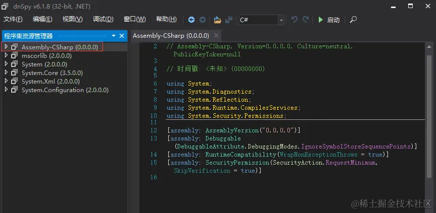 Assembly-CSharp.dll文件修改,比较复杂,这里我会详细说明下修改步骤,需要使用工具 dnSpy,分享资源中已提供,解压后打开 dnSpy,将Assembly-CSharp.dll文件拖拽到 dnSpy 左侧文件目录区域。
