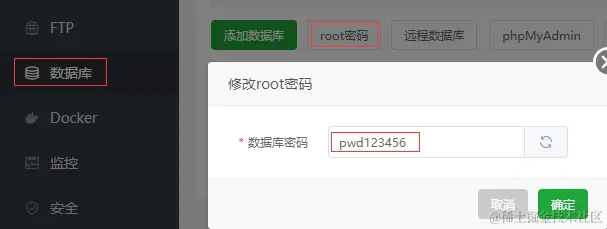 宝塔设置数据库 root 密码为pwd123456。为什么不是123456,因为考虑到如果你想修改源码中的密码,可以全局搜索替换,不会冲突。