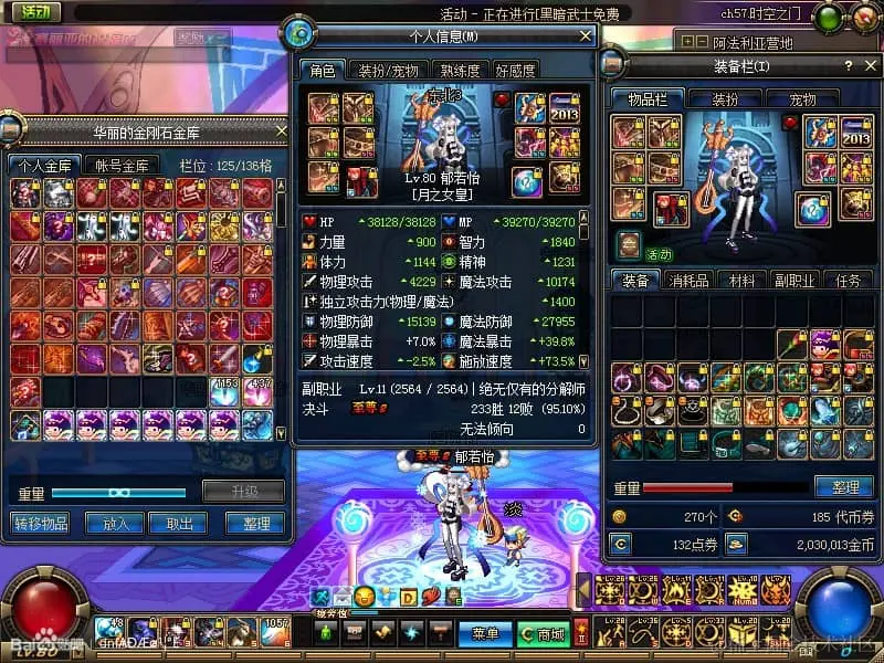 游戏玩法其实很简单,玩过 DNF 的都比较了解,做任务刷图升级就好,如果想体验 70 级满级,可以后台发送飞升秘药和升级券;如果想满级 VIP,可以后台发送贵族积分,一次使用大量贵族积分游戏会断开连接,重新登录就可以了;如果想强化武器,可以后台发送 +15 增幅券,游戏道具增幅最多就是 15,但是你可以通过材料继续增幅,这就看你的运气啦~ 其他的装备、天空套、称号等自己研究吧,很多可以选择的~