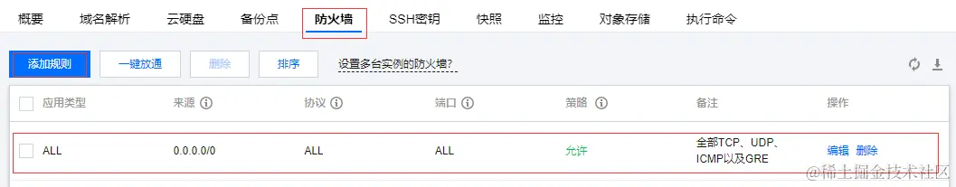 我们直接开放所有的 TCP 和 UDP 端口 1-65535,以腾讯云轻量应用服务器为例,在防火墙中配置如下规则。