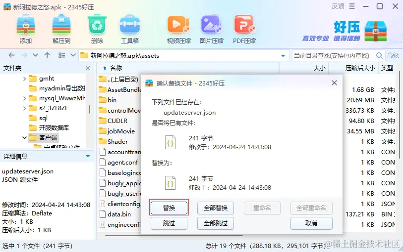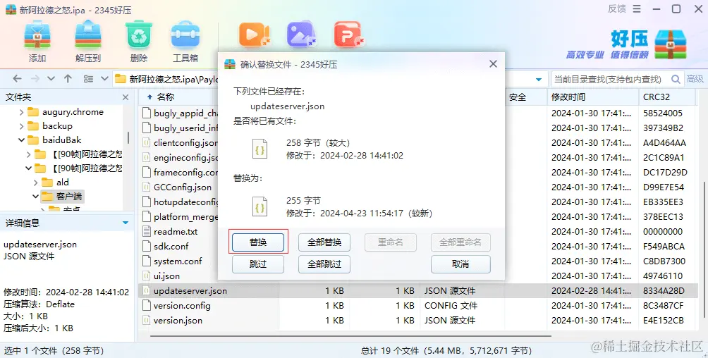 两个文件都改好后,将文件拖到对应目录下,压缩回客户端。