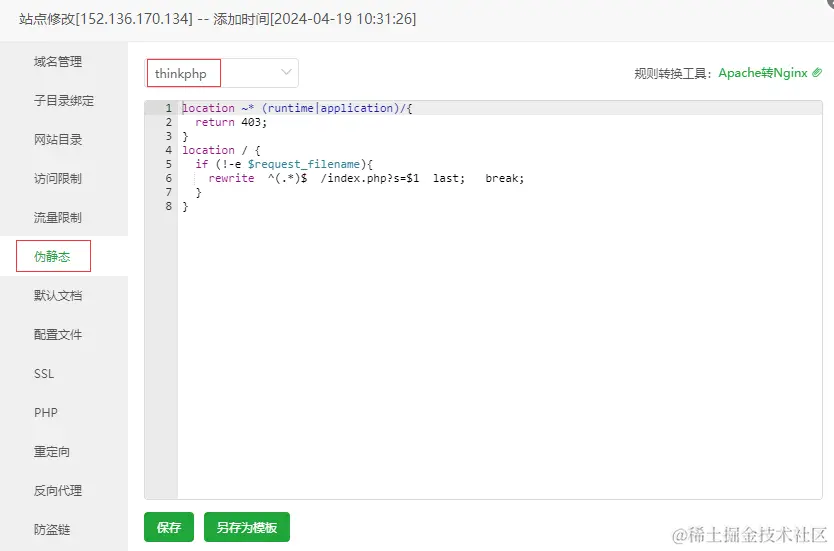 再次点击该网站设置,运行目录设置为public,关闭防跨站。