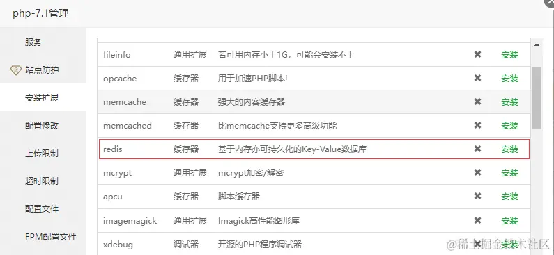 安装完后,还需安装 PHP 7.1 的扩展 redis 和 sg11。