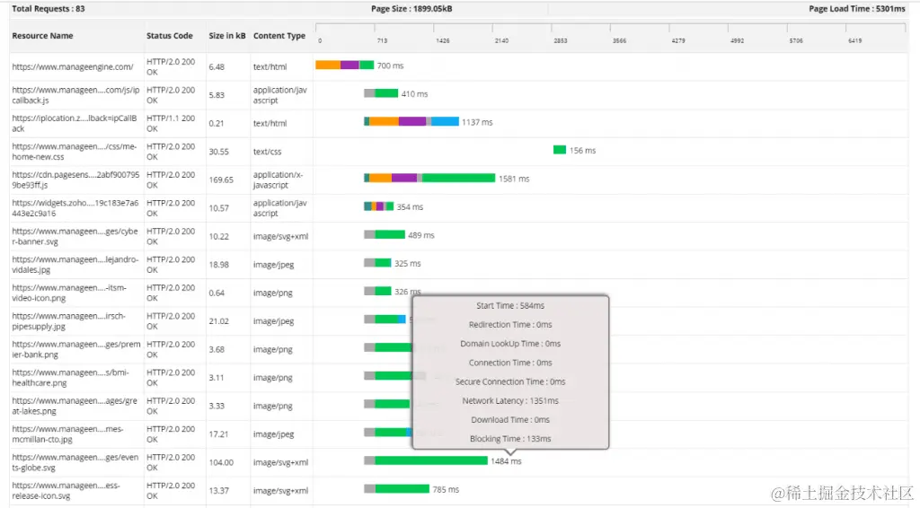 当涉及到跟踪网站的各个组成部分时,分析网页性能是必要的。应用程序经理的 网页分析器 通过识别和分析哪些组件实际上降低了网页的性能,为网页性能提供了完整的可见性。它根据各种参数,如响应时间、页面大小、资源大小、请求计数等等,来跟踪您的网页是如何运行的。