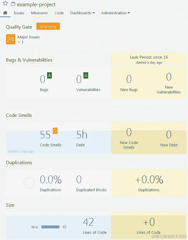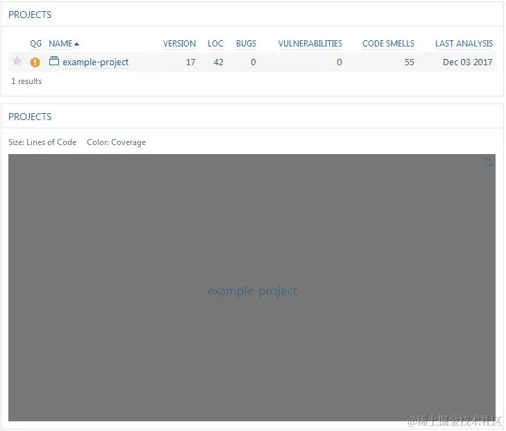 - 点击前述截图中显示的链接将直接带您到相应项目的 SonarQube 仪表板。