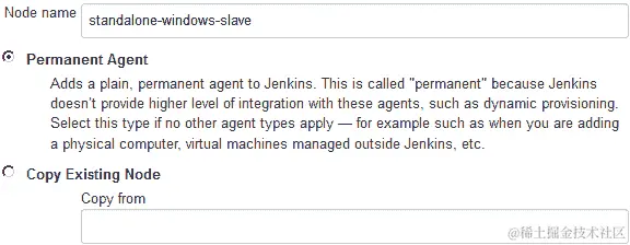 在节点名称字段下添加一个有意义的名称,并选择代理类型。目前,只有一种类型的代理可供选择:即永久代理。这些代理主要是物理机器和虚拟机。