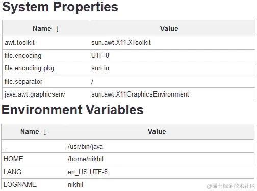 - 系统信息链接将向您显示有关相应 Jenkins 从属节点的大多数系统信息,例如系统属性和环境变量。请参阅上述屏幕截图。您不会经常访问此处。尽管如此,在调试由于系统工具、环境变量等引起的构建错误时,这很有用: