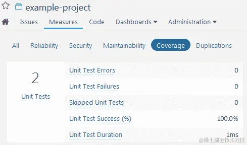 - 点击“Measures | Coverage”。在结果页面上,你将得到你的代码覆盖率和单元测试结果报告的良好概览,如下截图所示: