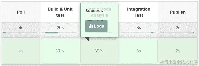 一旦你进入你的分支流水线,将鼠标悬停在“Static Code Analysis”阶段上,然后点击“Logs”。参见以下截图: