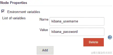 如下图所示,你可以将环境变量传递给 Jenkins 的节点。可以传递多个环境变量(通过点击添加按钮)。这些环境变量在 Jenkins 管道执行期间可用: