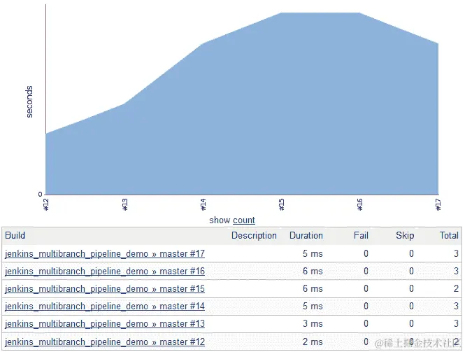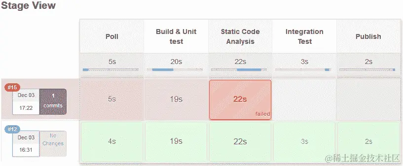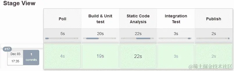 - 要查看单元测试和集成测试结果,请点击页面下方最新测试结果链接,该链接在与阶段视图相同的页面上,如下截图所示: