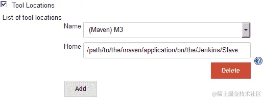 如下图所示,你可以指定 Jenkins 节点上某些工具的位置,覆盖全局配置: