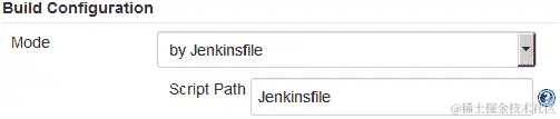 - 滚动到底部的构建配置部分。确保 Mode 字段设置为按 Jenkinsfile,Script Path 字段设置为