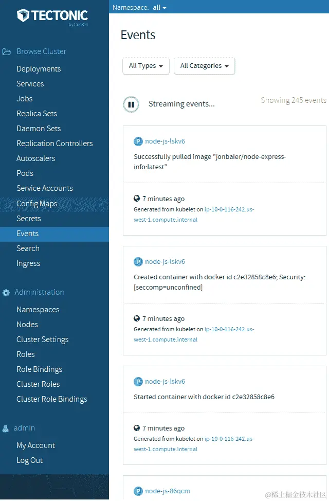 Tectonic 现在已经普遍可用,仪表板已经具有一些不错的功能。如下截图所示,我们可以看到关于我们的复制控制器的很多详细信息,甚至可以使用 GUI 通过点击按钮来进行上下缩放: