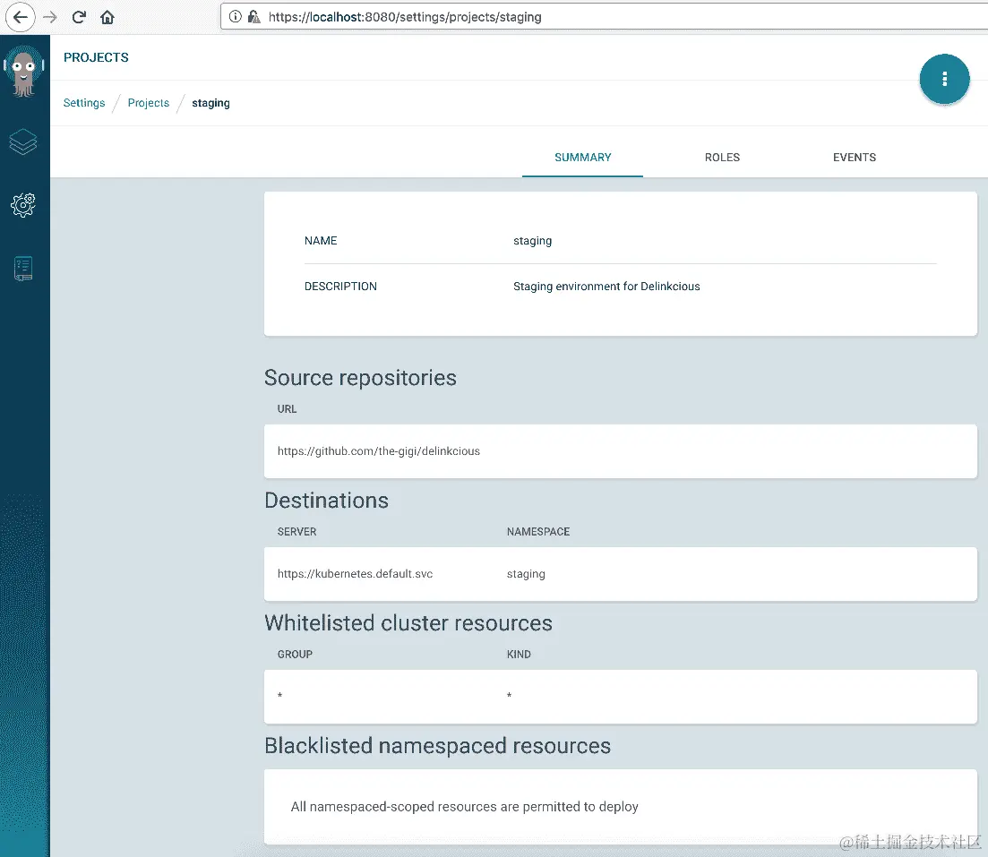 然后,在 Argo CD 中,我们可以创建一个名为 staging 的新项目: