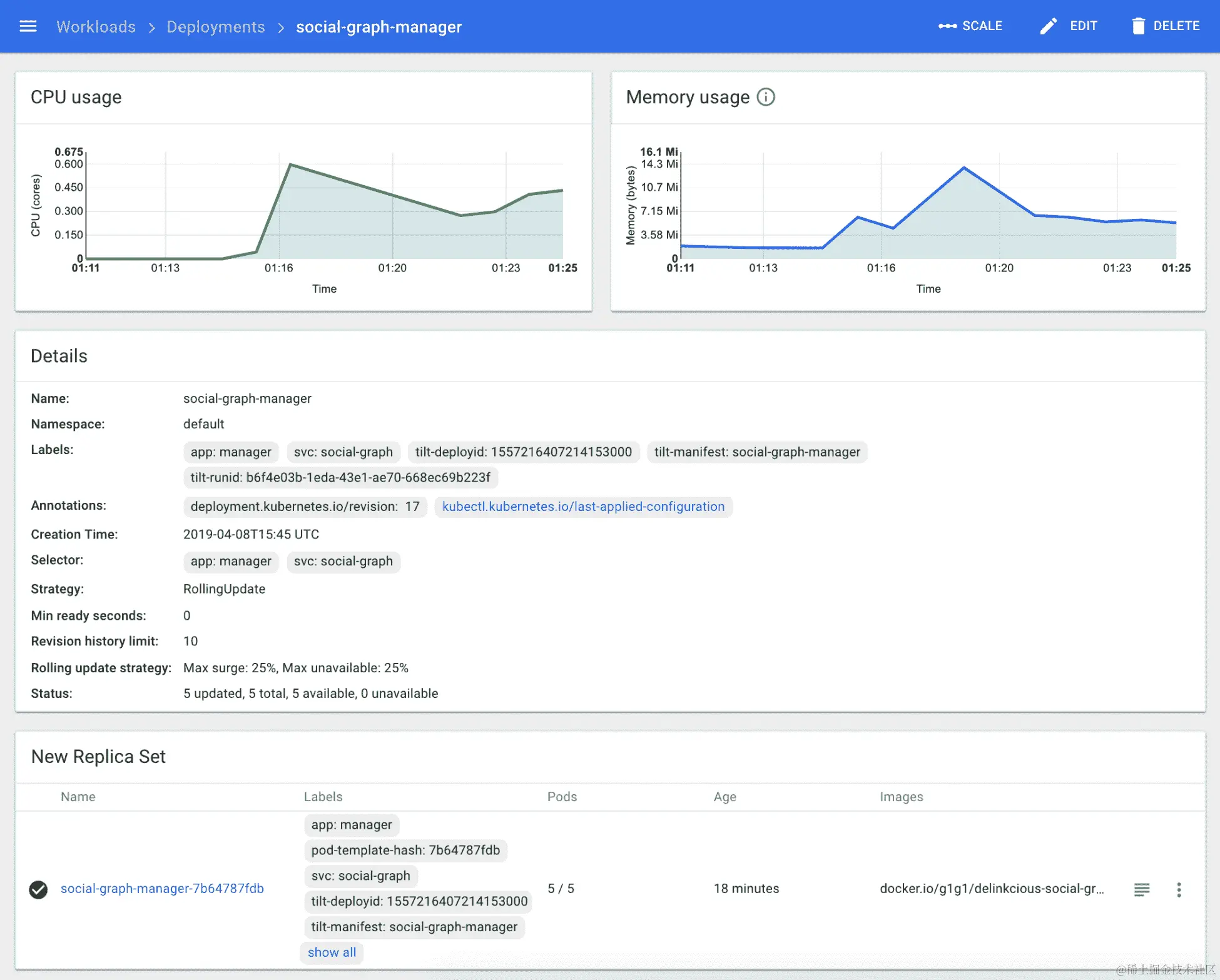 我们还可以使用 kubectl 在元数据中观察所有权链。首先,让我们获取社交图管理器 pod 的名称,并从 ownerReferences 元数据中找到其 ReplicaSet 所有者的名称: