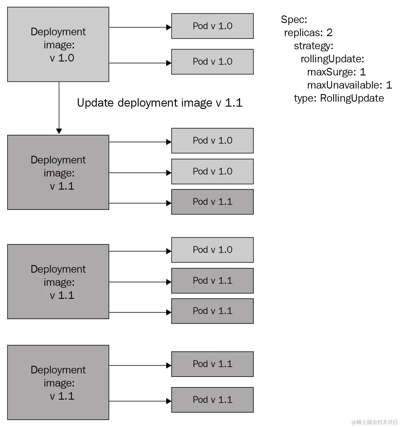 因此,如果 ReplicaSet 控制器负责管理 pod 的数量,那么 Deployment 对象添加了什么呢?Deployment 对象封装了部署的概念,包括部署策略和部署历史。它还提供了面向部署的操作,如更新部署和回滚部署,我们稍后会看到。