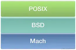 下面通过苹果系统的架构图,了解一下上述各个名词的作用。我们使用的 iOS/ macOS 系统,是建立在名 Darwin 的底层操作系统上的,如图: