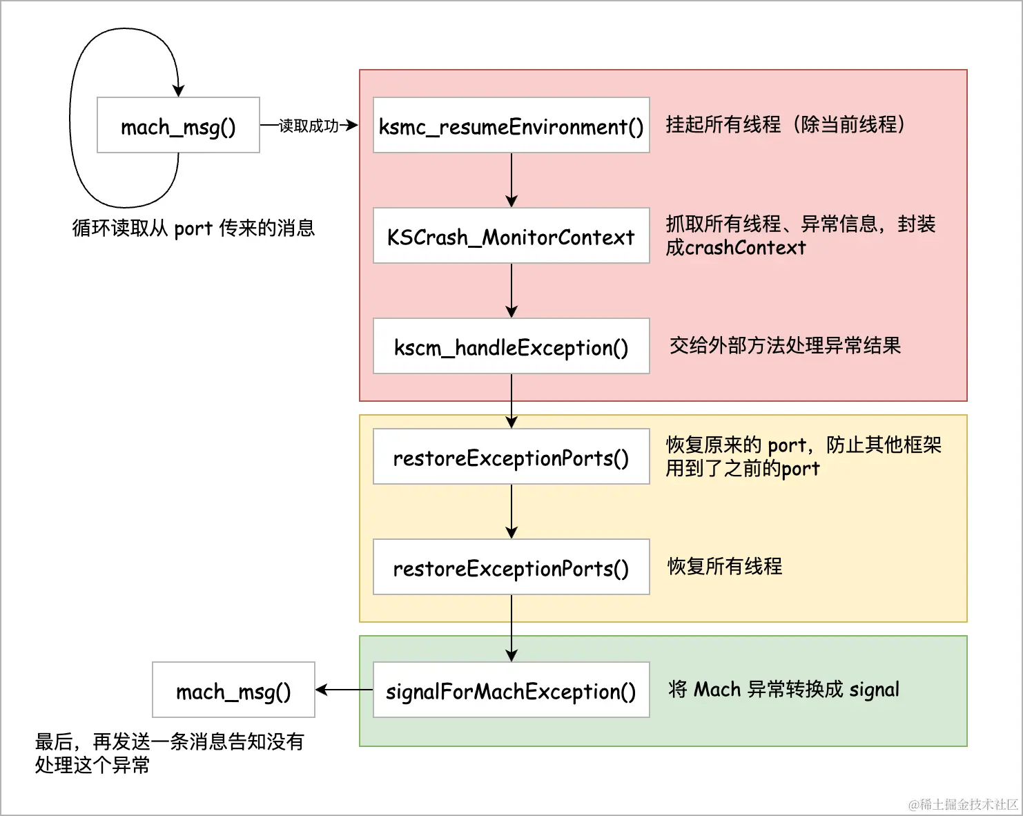 本篇总结了iOS 中异常的类型以及常用框架 KScrash 中各种捕获异常的方法,其中异常捕获的思路是比较相似的: