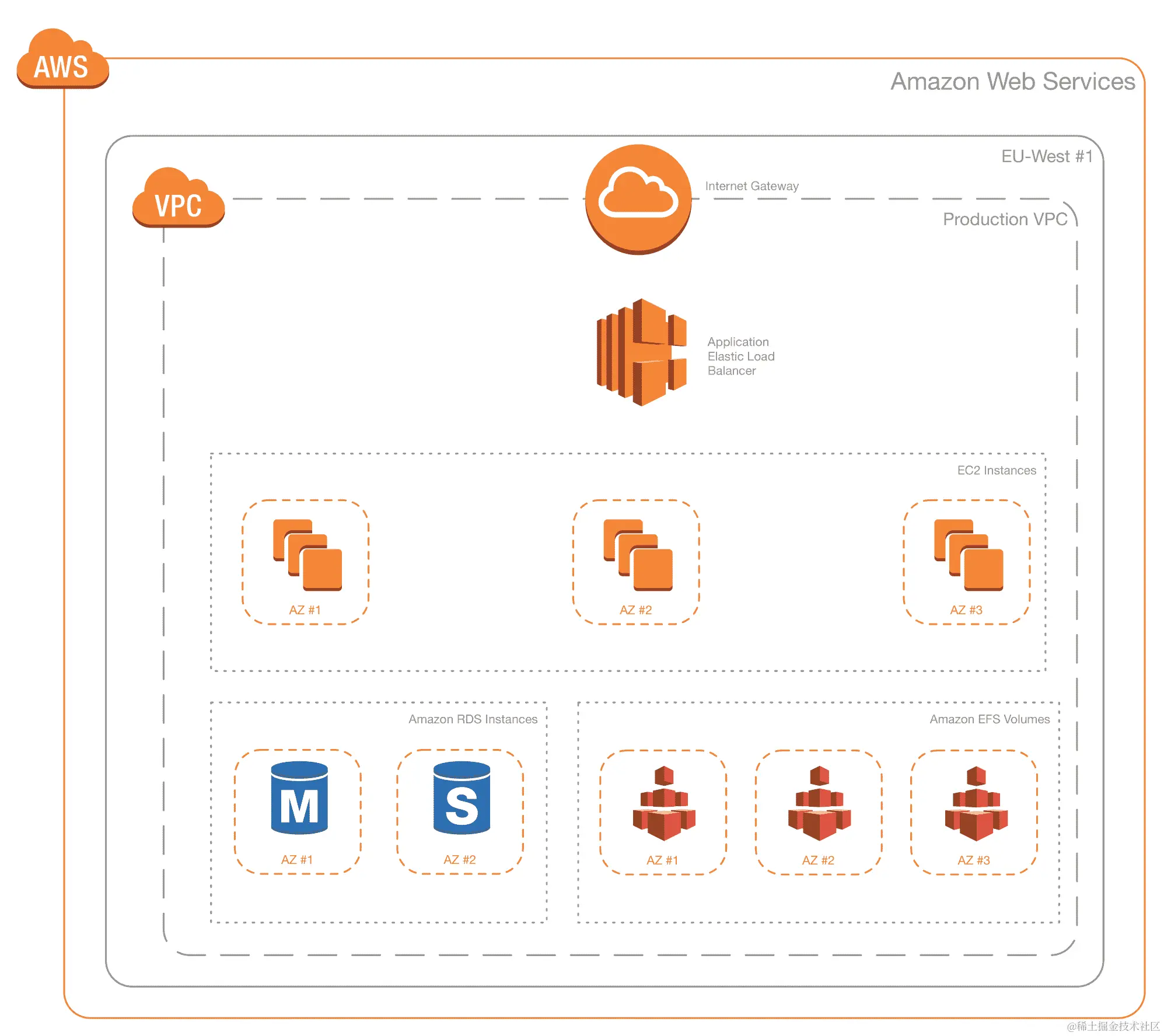 我们还配置了四个安全组,其中三个包含动态内容,以在最终在我们的 VPC 中为我们的服务提供安全保障之前,最终配置了一个 ELB。