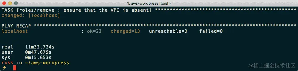 与以往一样,不要忘记在继续之前检查弹性负载均衡器是否已被移除。一旦 playbook 运行完毕,我建议您登录 AWS 控制台,双重检查一切是否已正确移除。playbook 不会移除启动配置,这不应该是一个问题,因为它们没有相关的成本。但是,我建议检查未附加的 EBS 卷和快照,因为这些将产生成本。