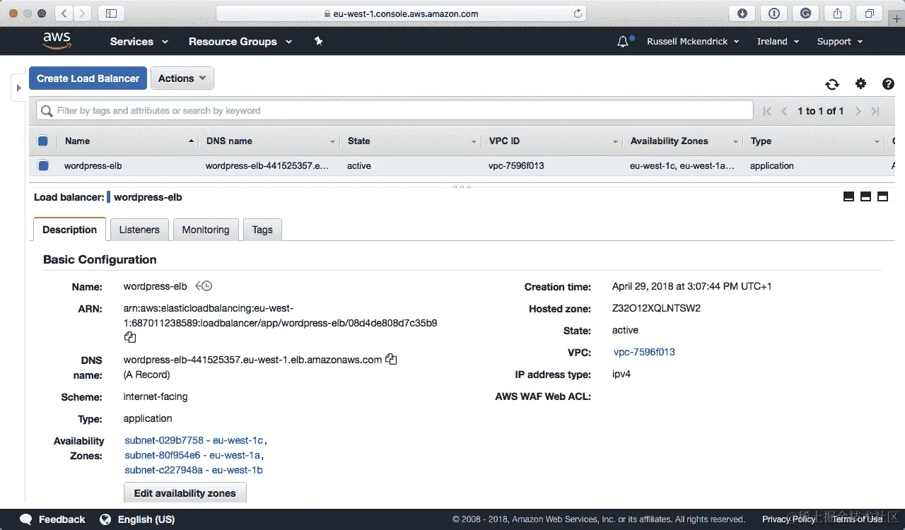 应用弹性负载均衡器:我们将使用弹性负载均衡器的公共主机名进行安装,因此需要在开始安装之前启动它