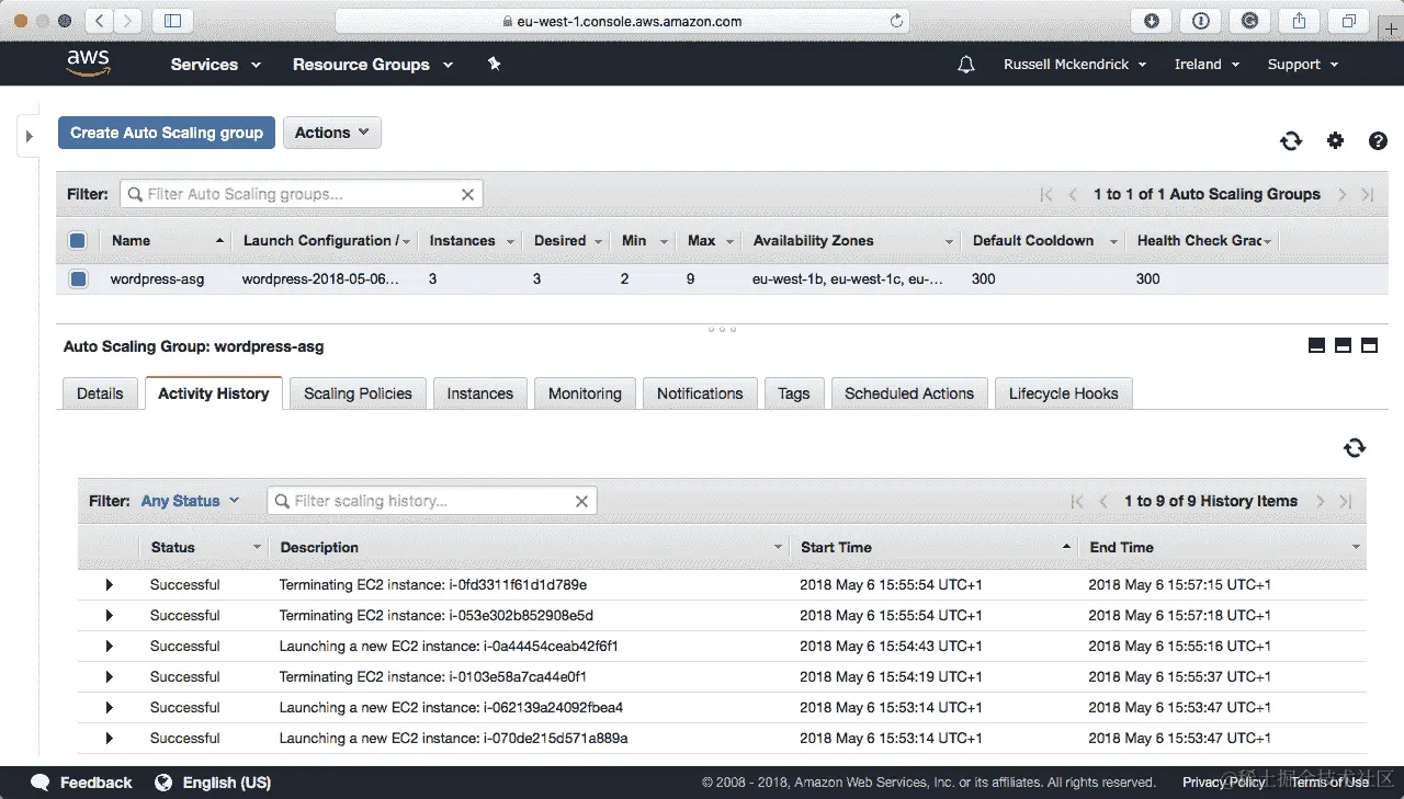 你可以在 AWS 控制台的自动扩展活动日志中看到发生了什么: