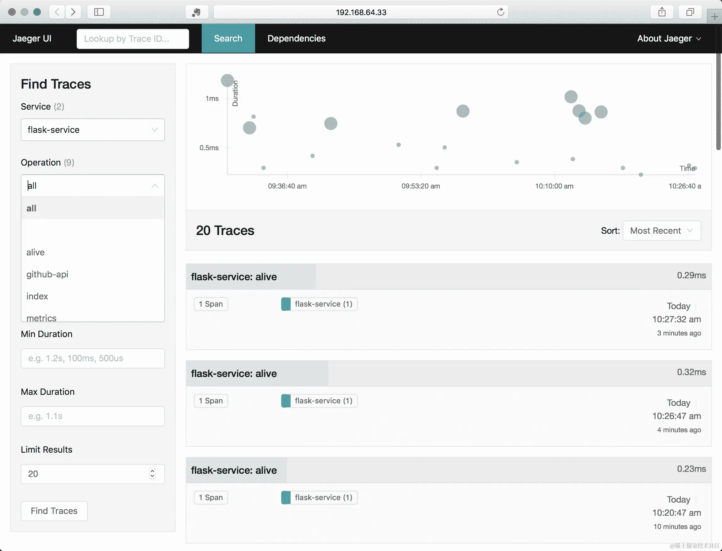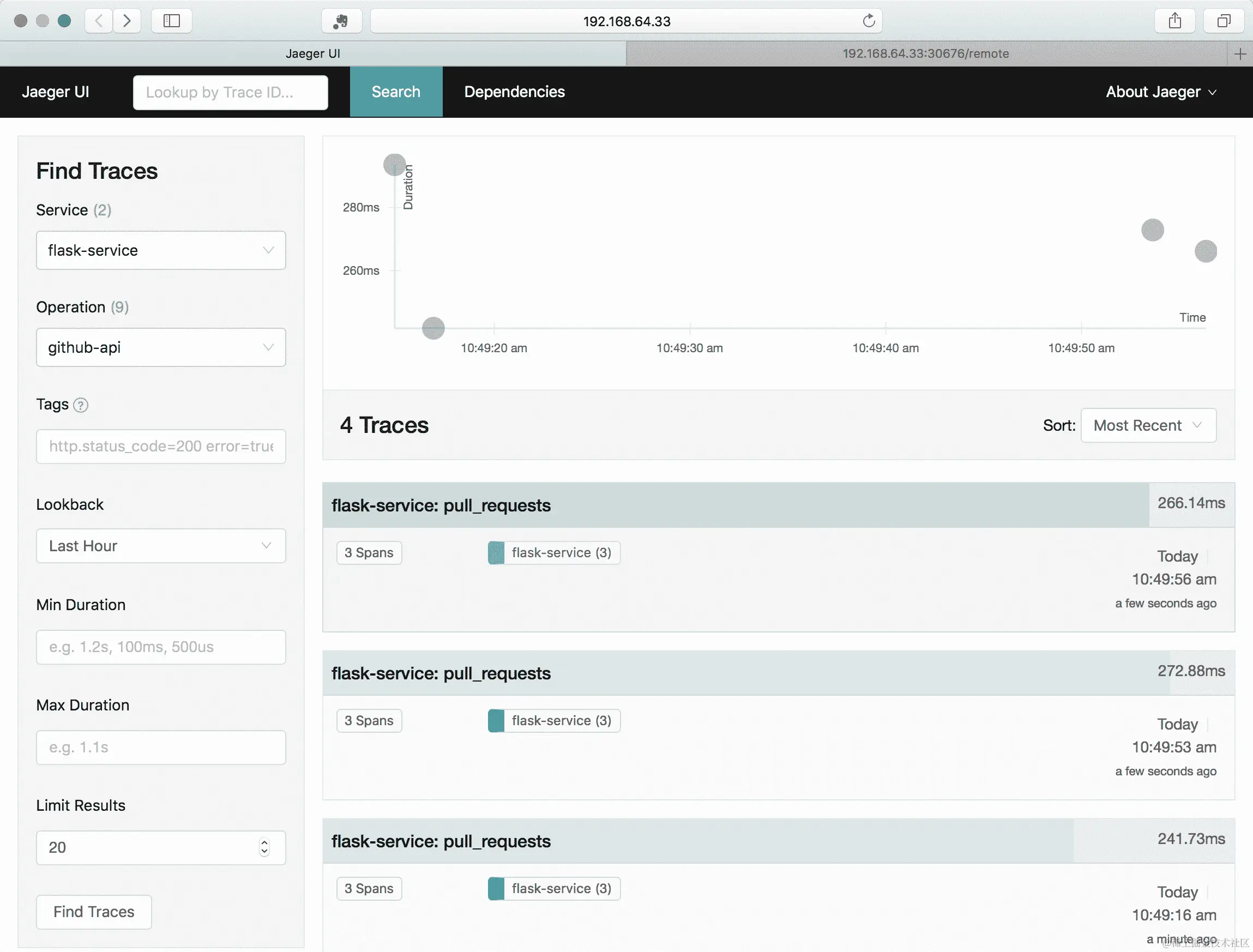 此镜像已安装了 curl 和 ab,因此您可以使用此命令验证您是否可以与我们在早期示例中创建的 Flask 服务进行通信: