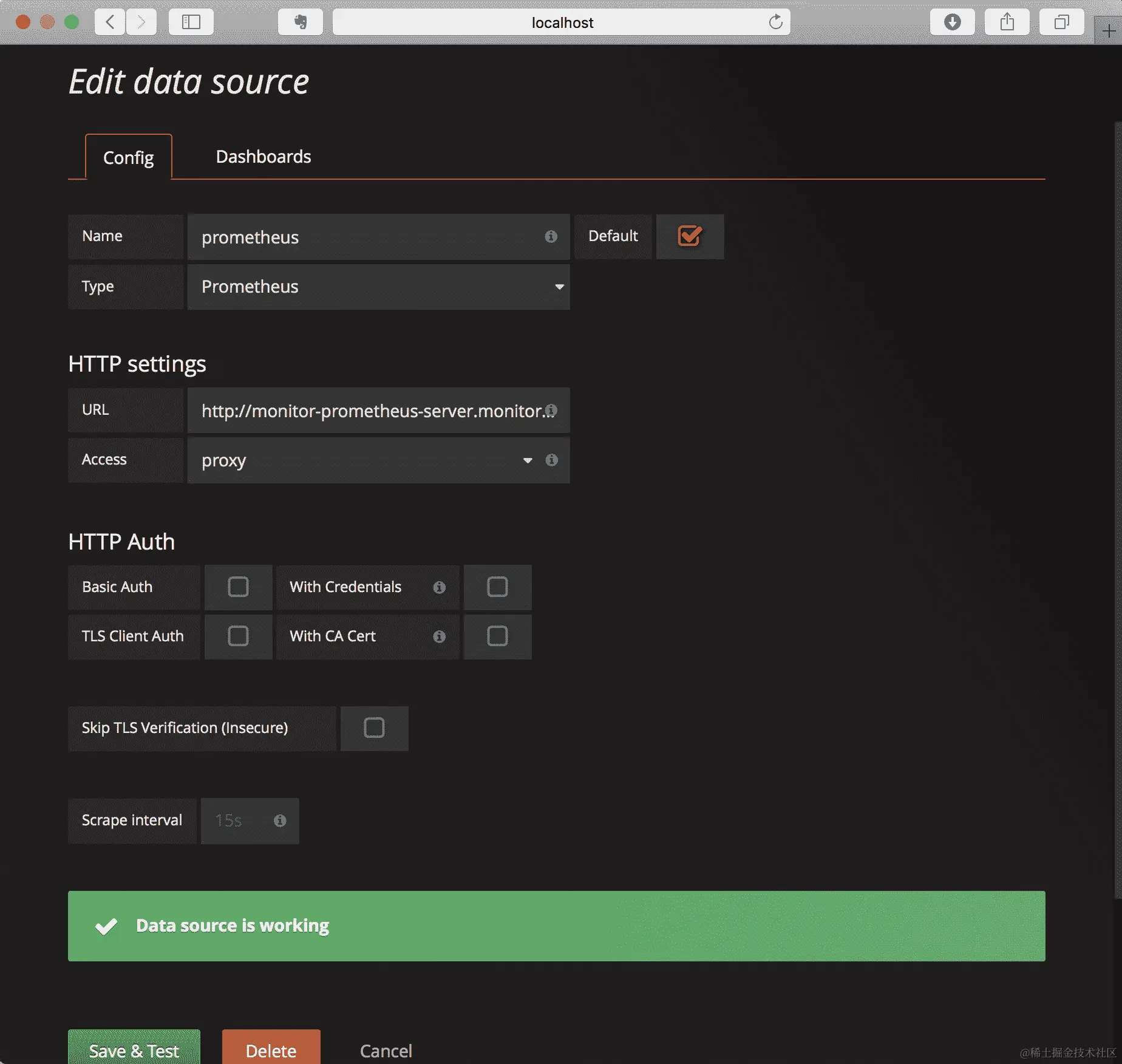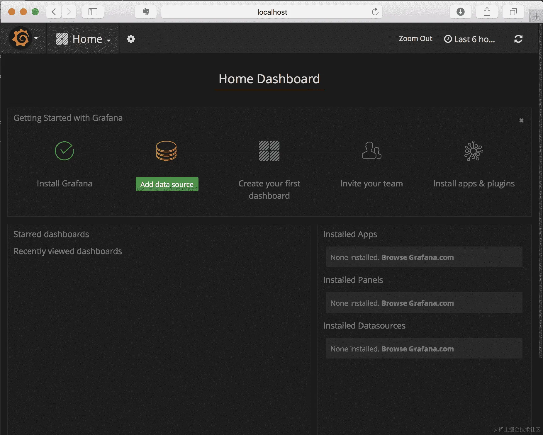 这将打开一个到 Grafana 的浏览器窗口。该命令将在设置容器时等待,但当服务端点可用时,它将打开一个浏览器窗口: